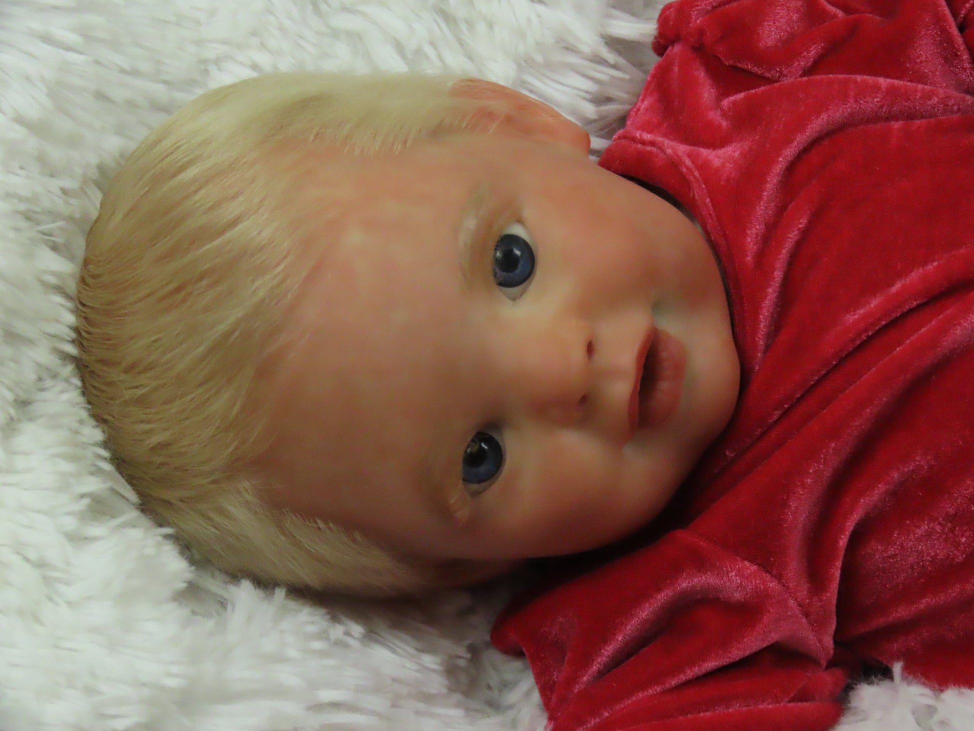 Baby will be reborned by me. He/She will have a Caucasian/White skintone similar to to photos above. He/She will have 3/4 vinyl arms and legs, and a flesh colored cloth body, making him/her pose-able. His/her eyelashes will be rooted and sealed inside. His/her nails will be manicured and sealed inside. He/she will be hand-painted with many translucent layers of Ultimate Fusion Paint, including subtle veining and soft mottling, to give him/her his/her lifelike features and making him/her one of a kind. He/she will also be weighted with fine glass beads and ultra soft fiberfill giving him/her that cuddly feel of a real baby