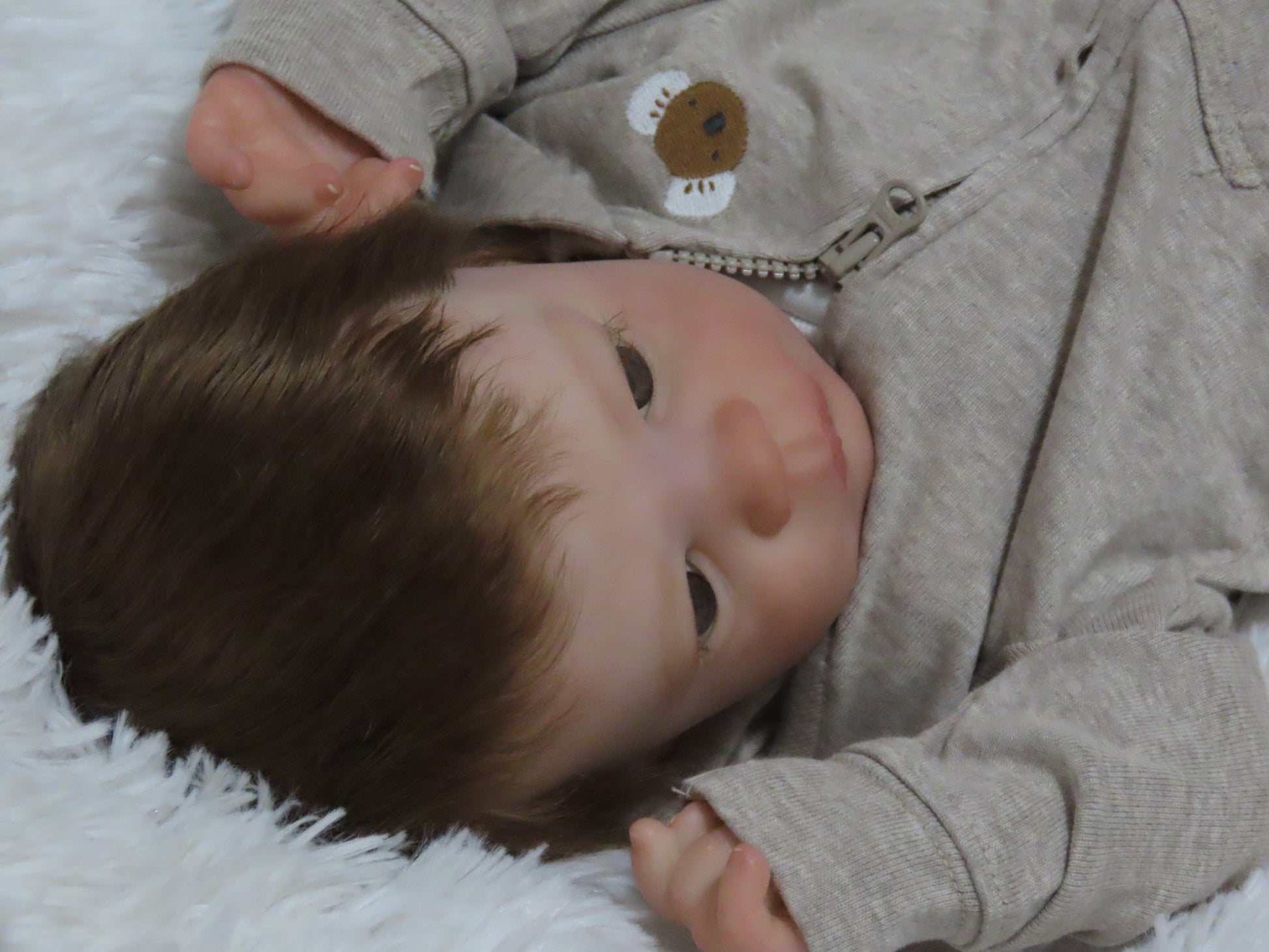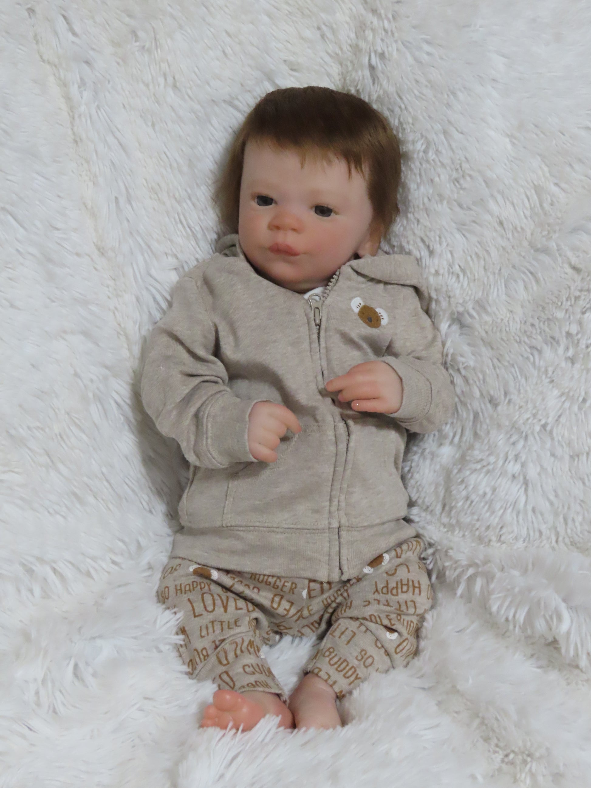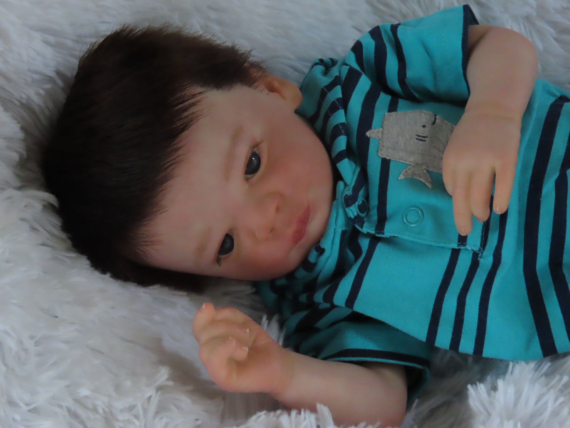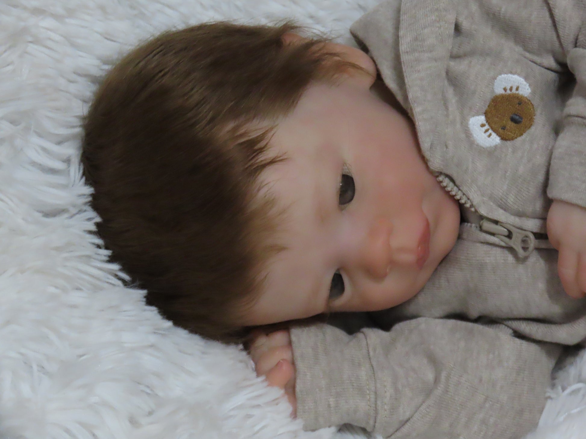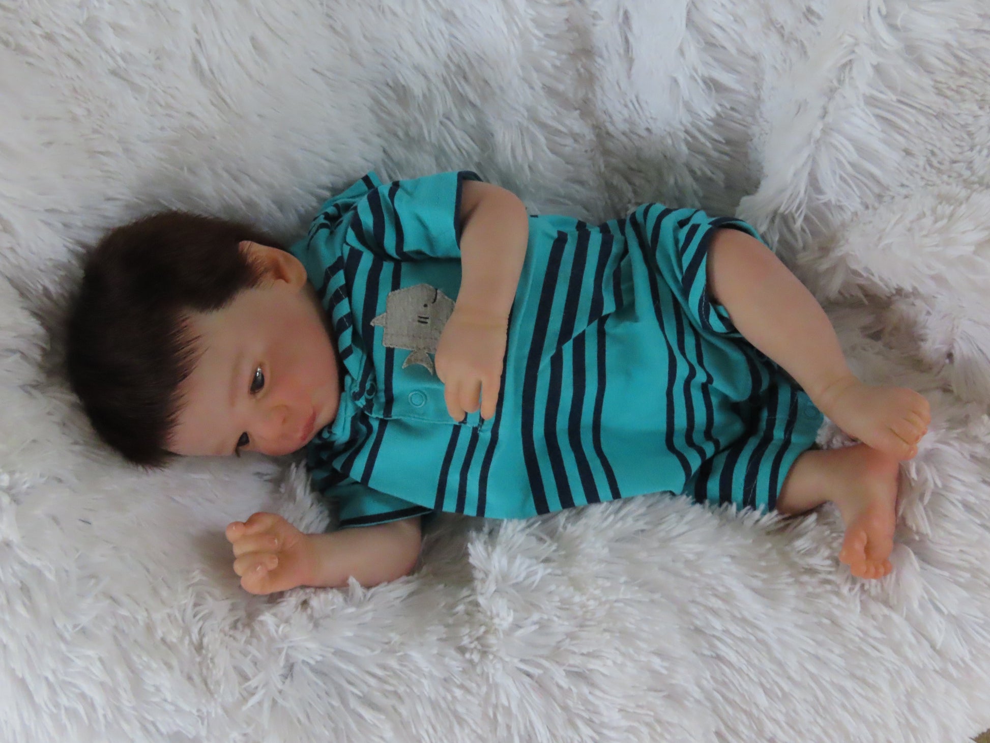 Baby will be reborned by me. He/She will have a Caucasian/White skintone similar to to photos above. He/She will have full vinyl arms and legs, and a flesh colored cloth body, making him/her pose-able. His/her eyelashes will be rooted and sealed inside. His/her nails will be manicured and sealed inside. He/she will be hand-painted with many translucent layers of Ultimate Fusion Paint, including subtle veining and soft mottling, to give him/her his/her lifelike features and making him/her one of a kind. He/she will also be weighted with fine glass beads and ultra soft fiberfill giving him/her that cuddly feel of a real baby