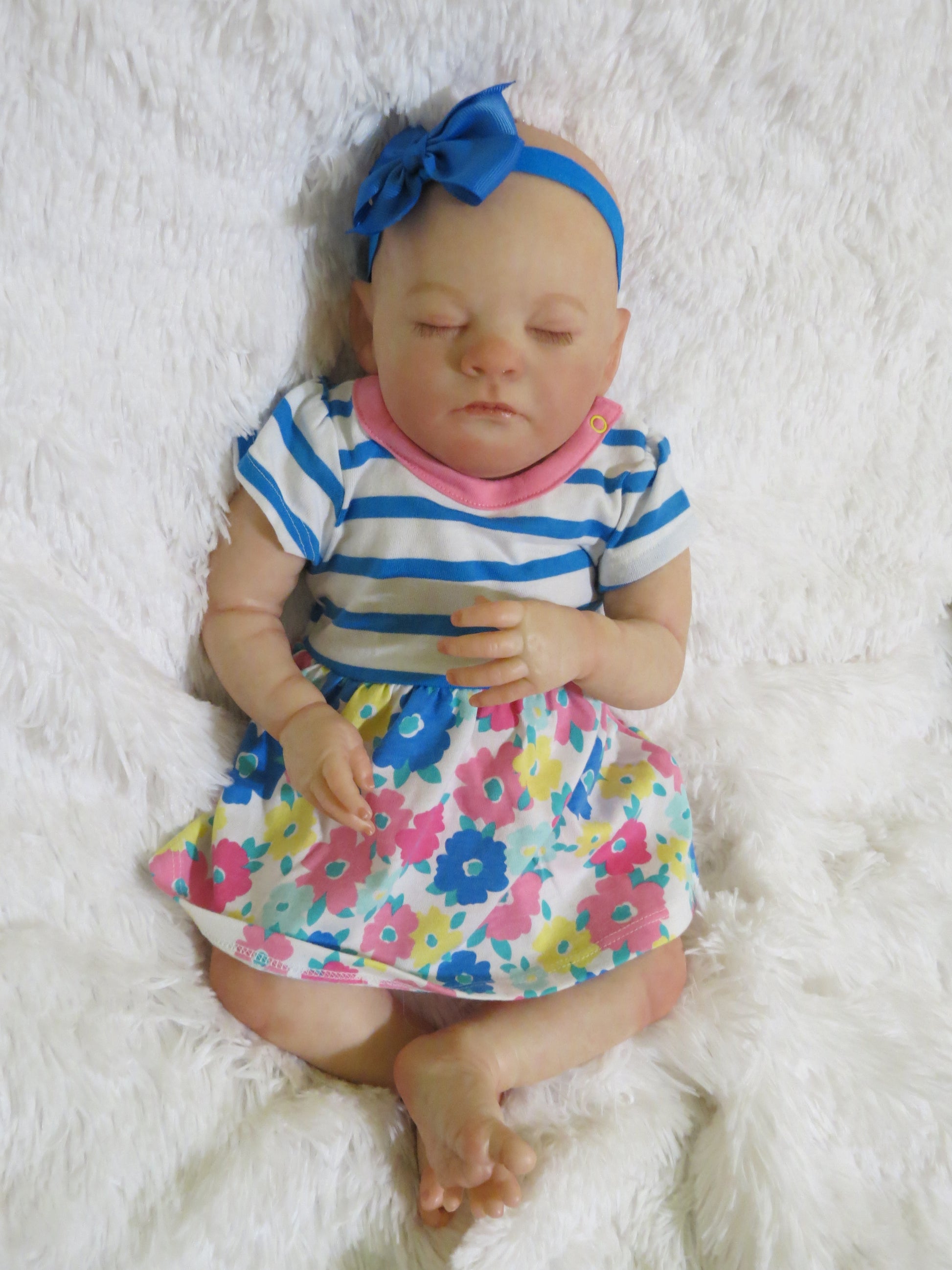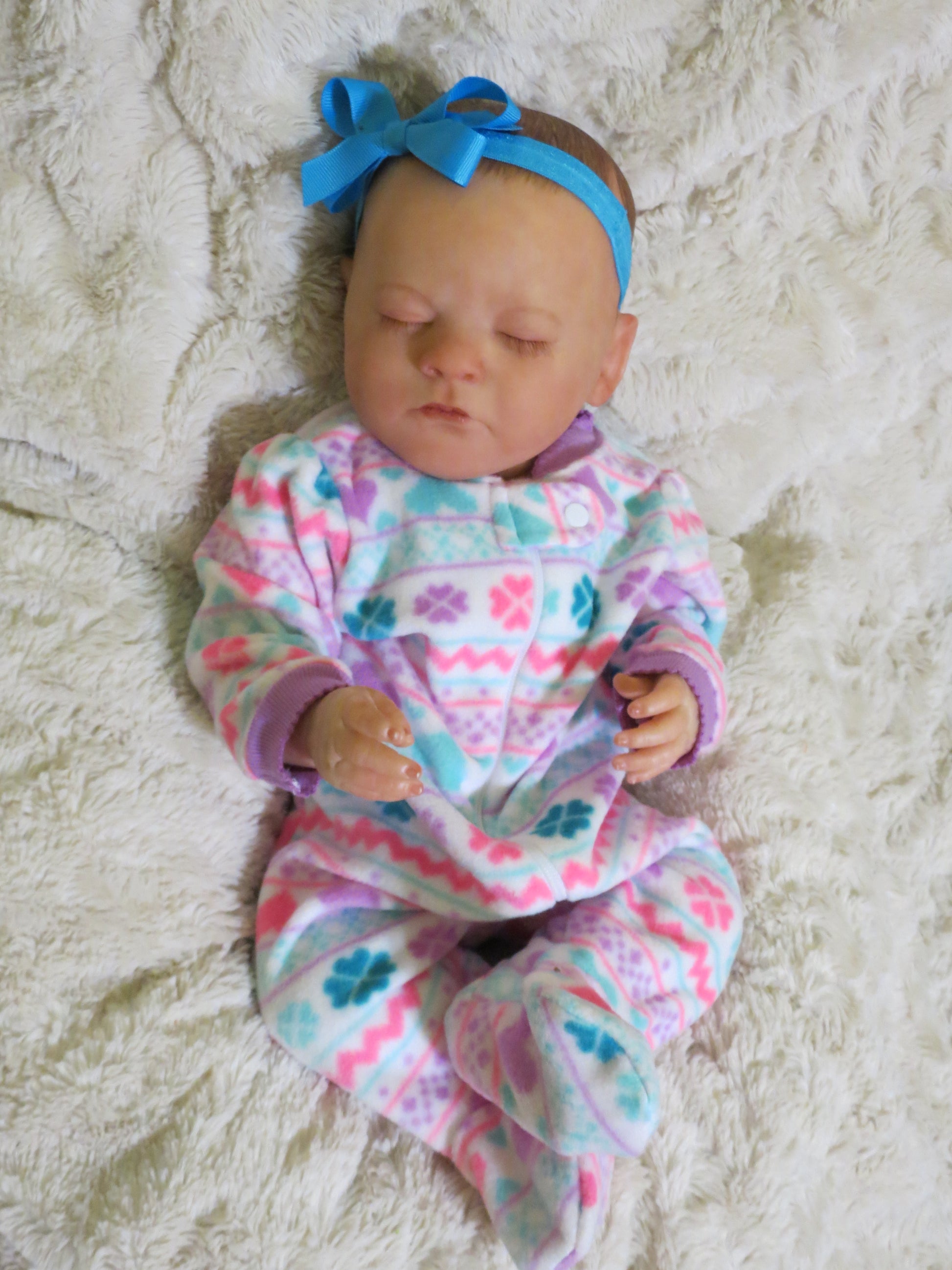 Baby will be reborned by me. He/She will have a Caucasian/White skintone similar to to photos above. He/She will have full vinyl arms and legs, and a flesh colored cloth body, making him/her pose-able. His/her eyelashes will be rooted and sealed inside. His/her nails will be manicured and sealed inside. He/she will be hand-painted with many translucent layers of Ultimate Fusion Paint, including subtle veining and soft mottling, to give him/her his/her lifelike features and making him/her one of a kind. He/she will also be weighted with fine glass beads and ultra soft fiberfill giving him/her that cuddly feel of a real baby