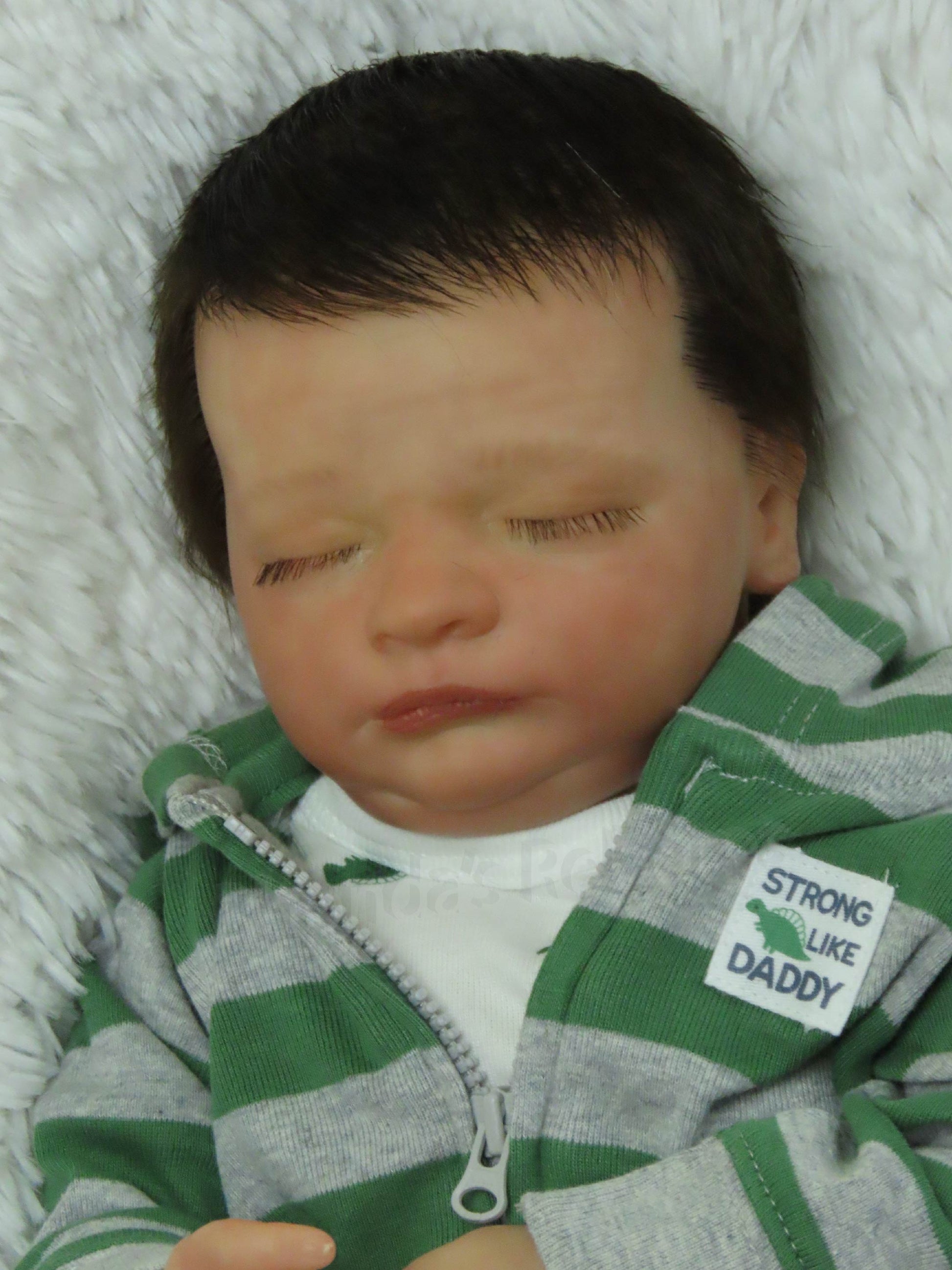 Baby will be reborned by me. He/She will have a Caucasian/White skintone similar to to photos above. He/She will have full vinyl arms and legs, and a flesh colored cloth body, making him/her pose-able. His/her eyelashes will be rooted and sealed inside. His/her nails will be manicured and sealed inside. He/she will be hand-painted with many translucent layers of Ultimate Fusion Paint, including subtle veining and soft mottling, to give him/her his/her lifelike features and making him/her one of a kind. He/she will also be weighted with fine glass beads and ultra soft fiberfill giving him/her that cuddly feel of a real baby