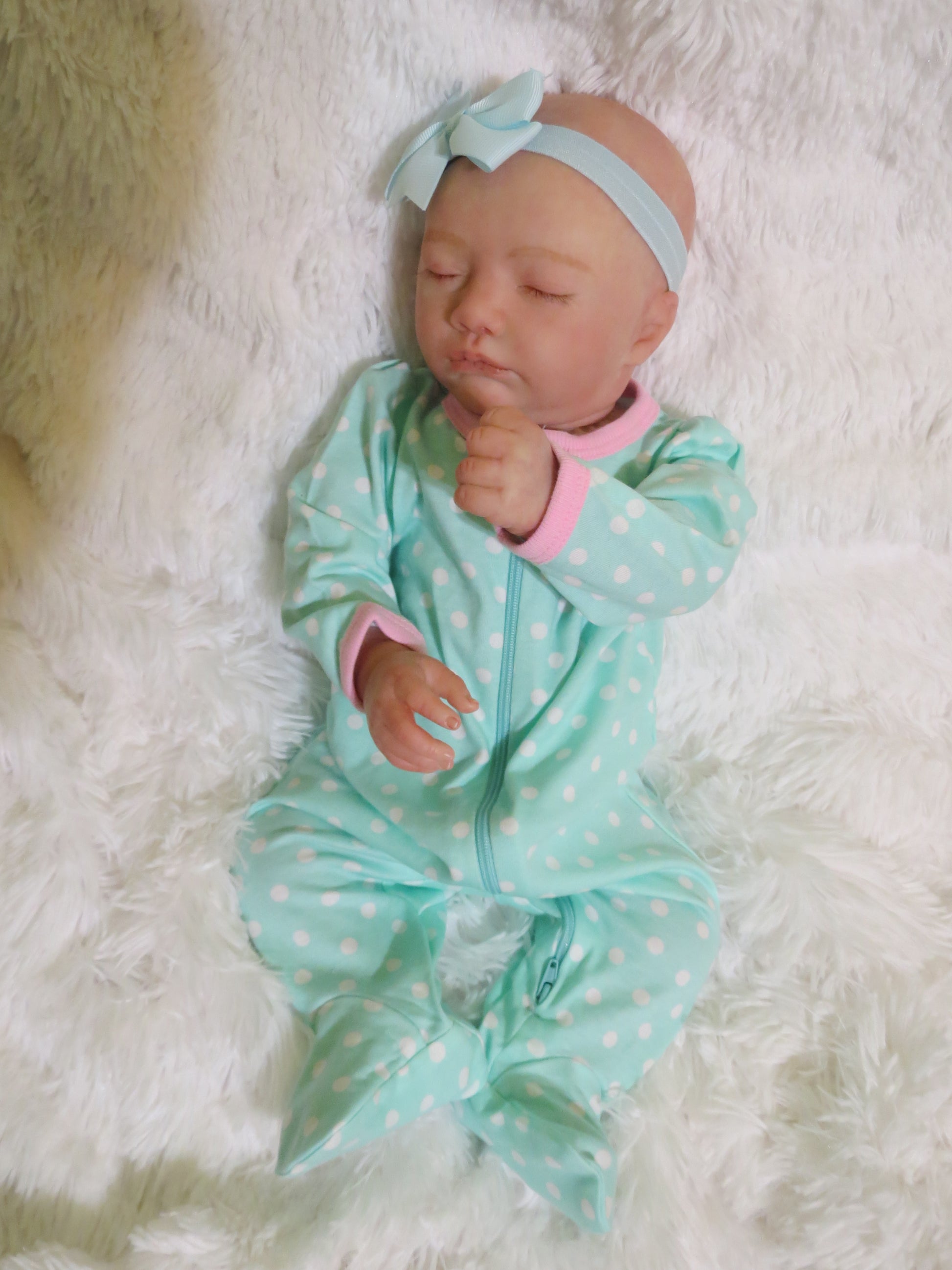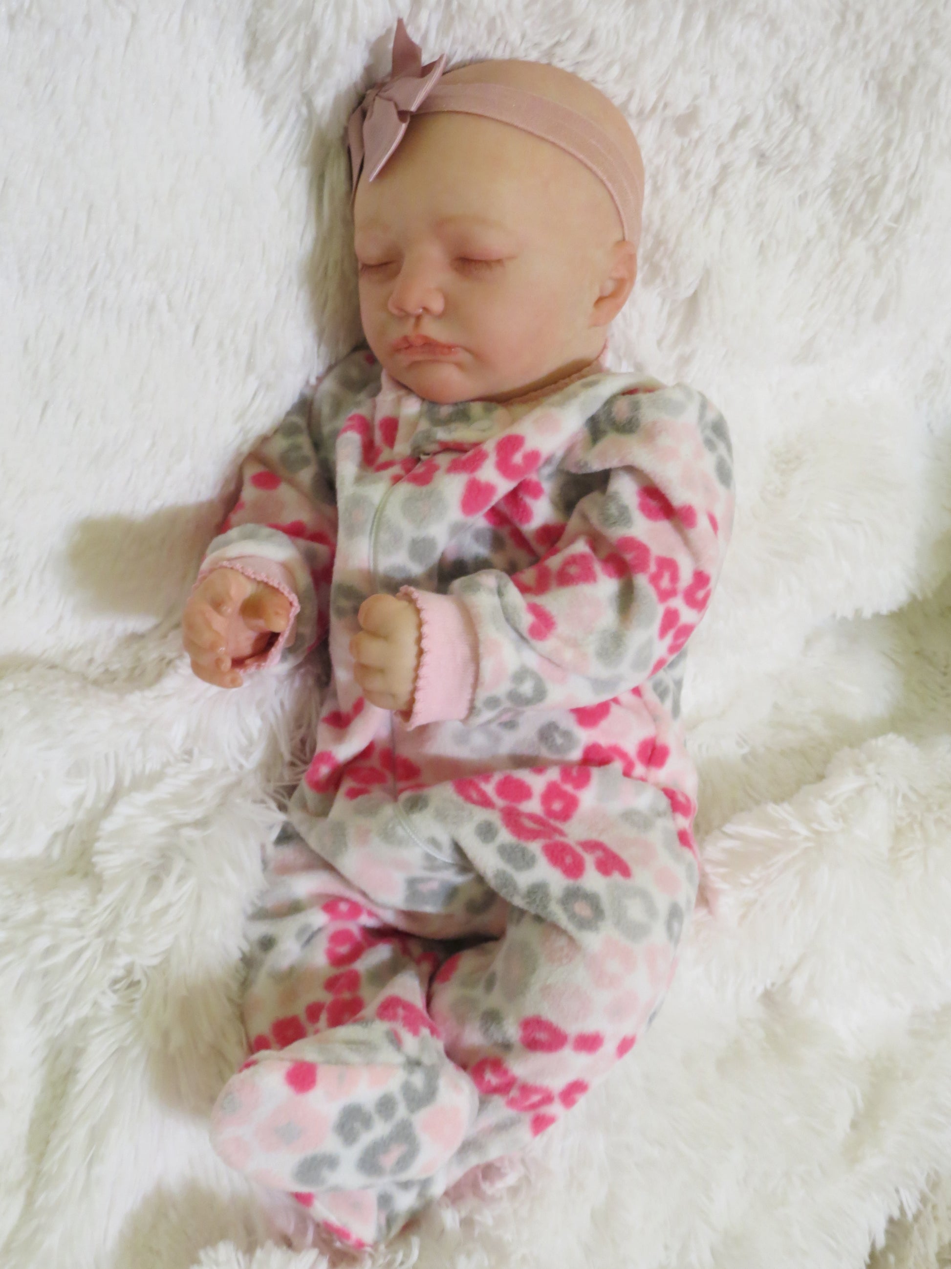 Baby will be reborned by me. He/She will have a Caucasian/White skintone similar to to photos above. He/She will have full vinyl arms and legs, and a flesh colored cloth body, making him/her pose-able. His/her eyelashes will be rooted and sealed inside. His/her nails will be manicured and sealed inside. He/she will be hand-painted with many translucent layers of Ultimate Fusion Paint, including subtle veining and soft mottling, to give him/her his/her lifelike features and making him/her one of a kind. He/she will also be weighted with fine glass beads and ultra soft fiberfill giving him/her that cuddly feel of a real baby