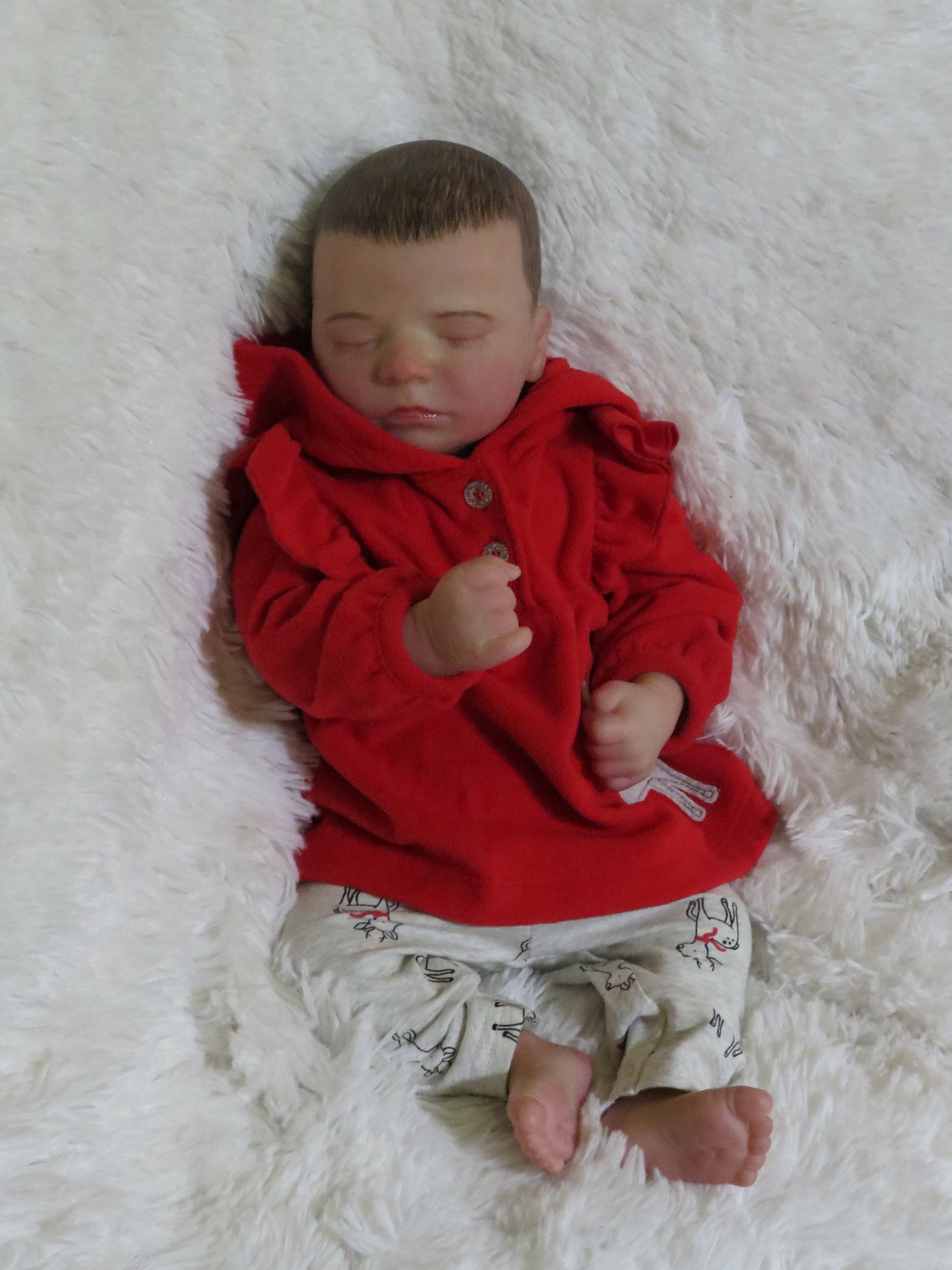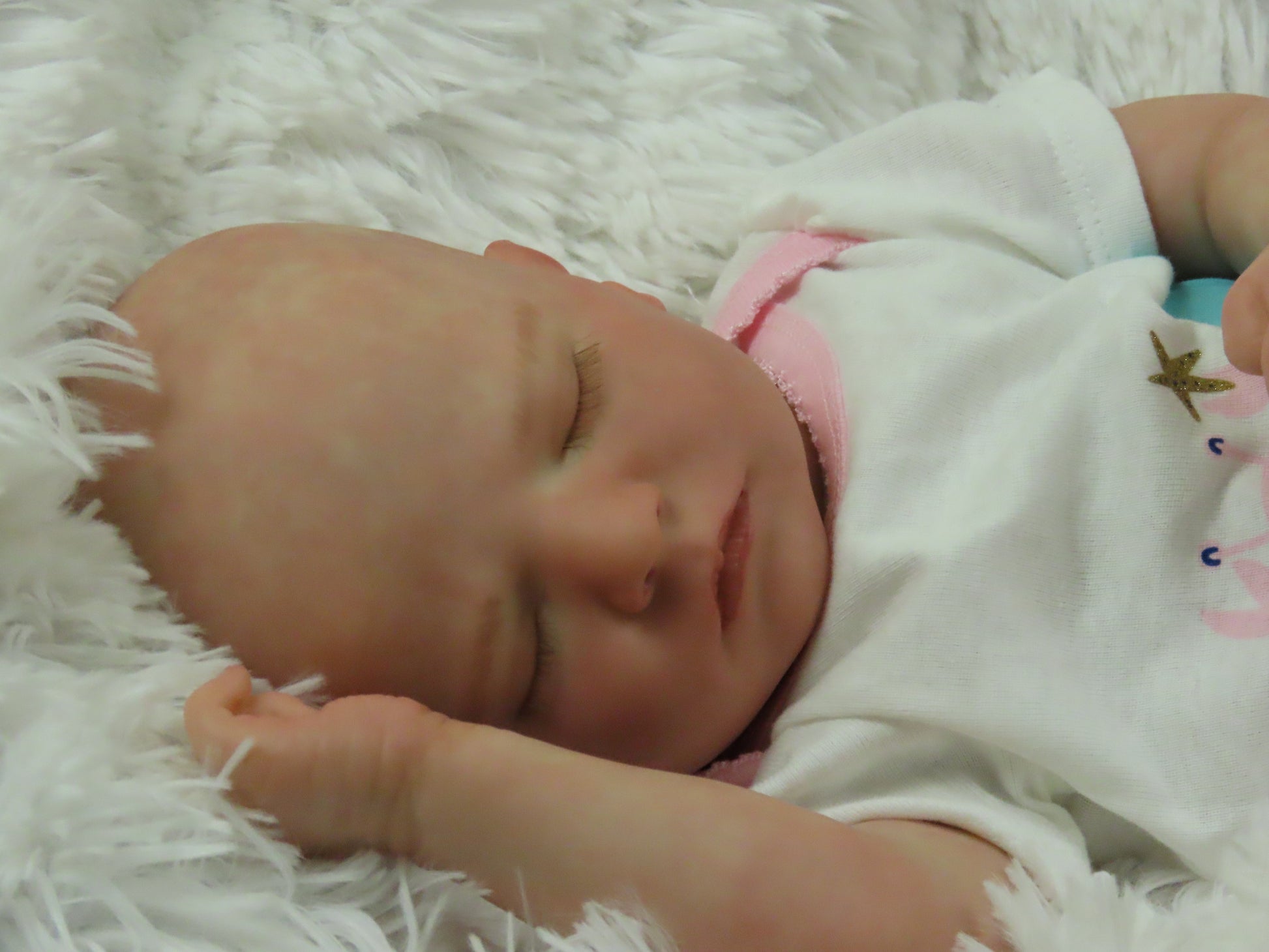Baby will be reborned by me. He/She will have a Caucasian/White skintone similar to to photos above. He/She will have full vinyl arms and legs, and a flesh colored cloth body, making him/her pose-able. His/her eyelashes will be rooted and sealed inside. His/her nails will be manicured and sealed inside. He/she will be hand-painted with many translucent layers of Ultimate Fusion Paint, including subtle veining and soft mottling, to give him/her his/her lifelike features and making him/her one of a kind. He/she will also be weighted with fine glass beads and ultra soft fiberfill giving him/her that cuddly feel of a real baby