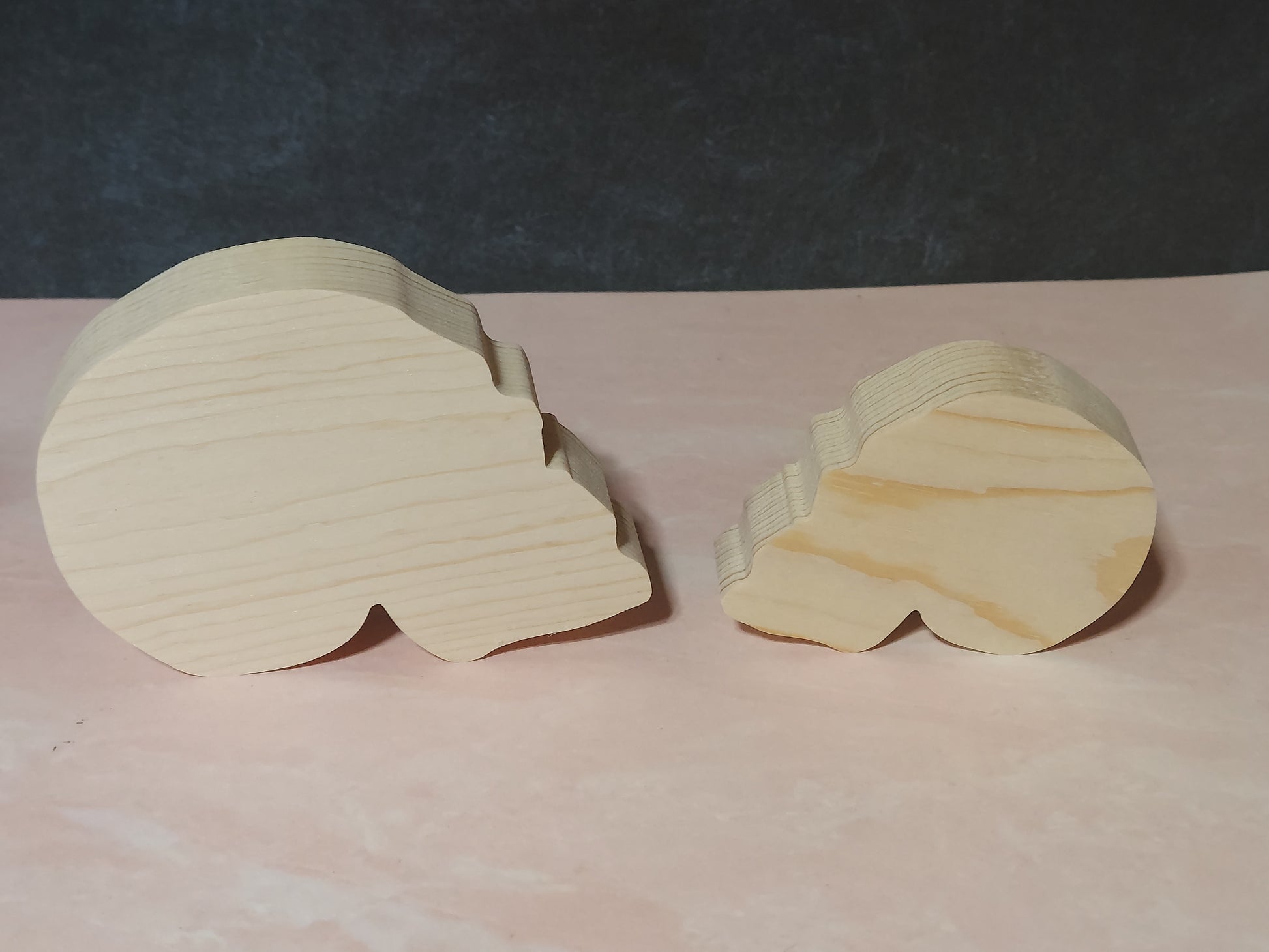 Each shape has been fine sanded on both sides. Edges are not rounded so there will be a crisp edge for painting. All pieces are ready to paint or play with. Shapes are made of solid 3/4" select pine. Each piece of wood is unique and will have a different grain pattern and color.