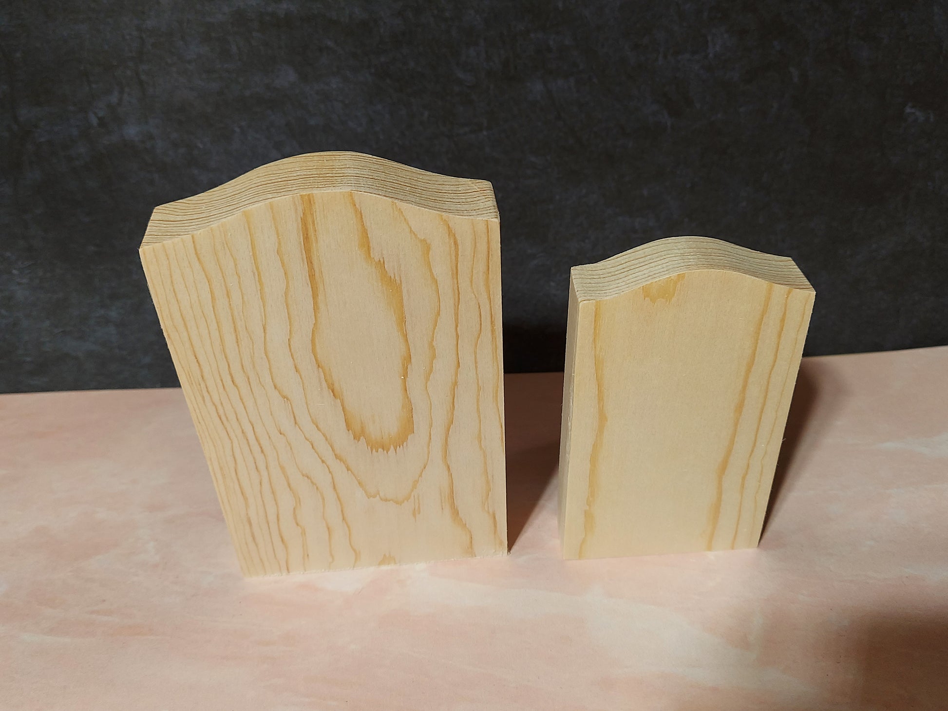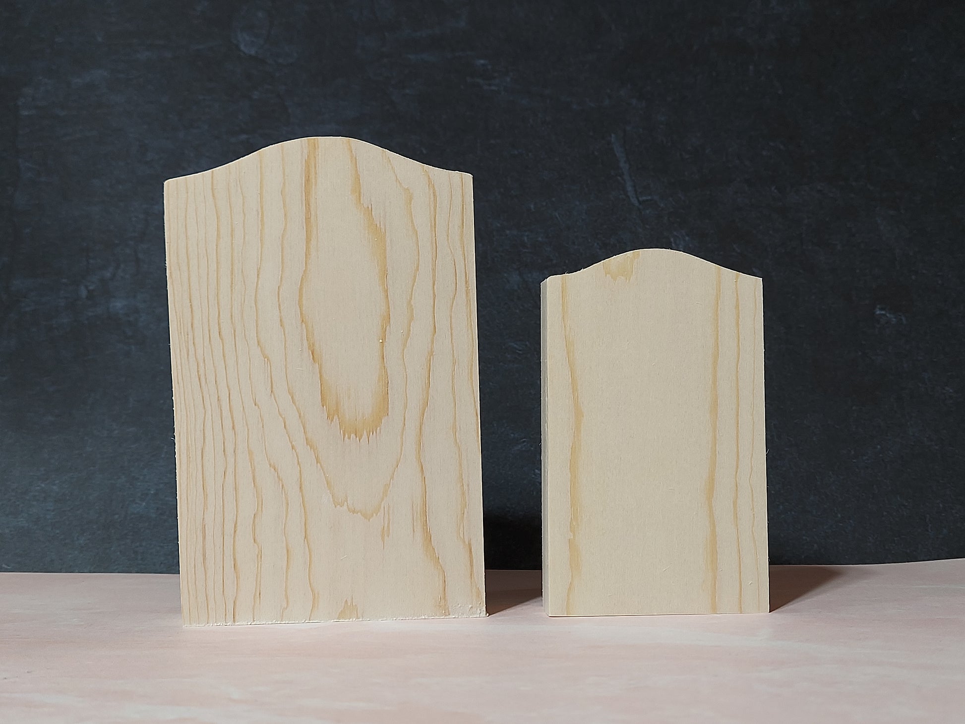 Each shape has been fine sanded on both sides. Edges are not rounded so there will be a crisp edge for painting. All pieces are ready to paint or play with. Shapes are made of solid 3/4" select pine. Each piece of wood is unique and will have a different grain pattern and color.