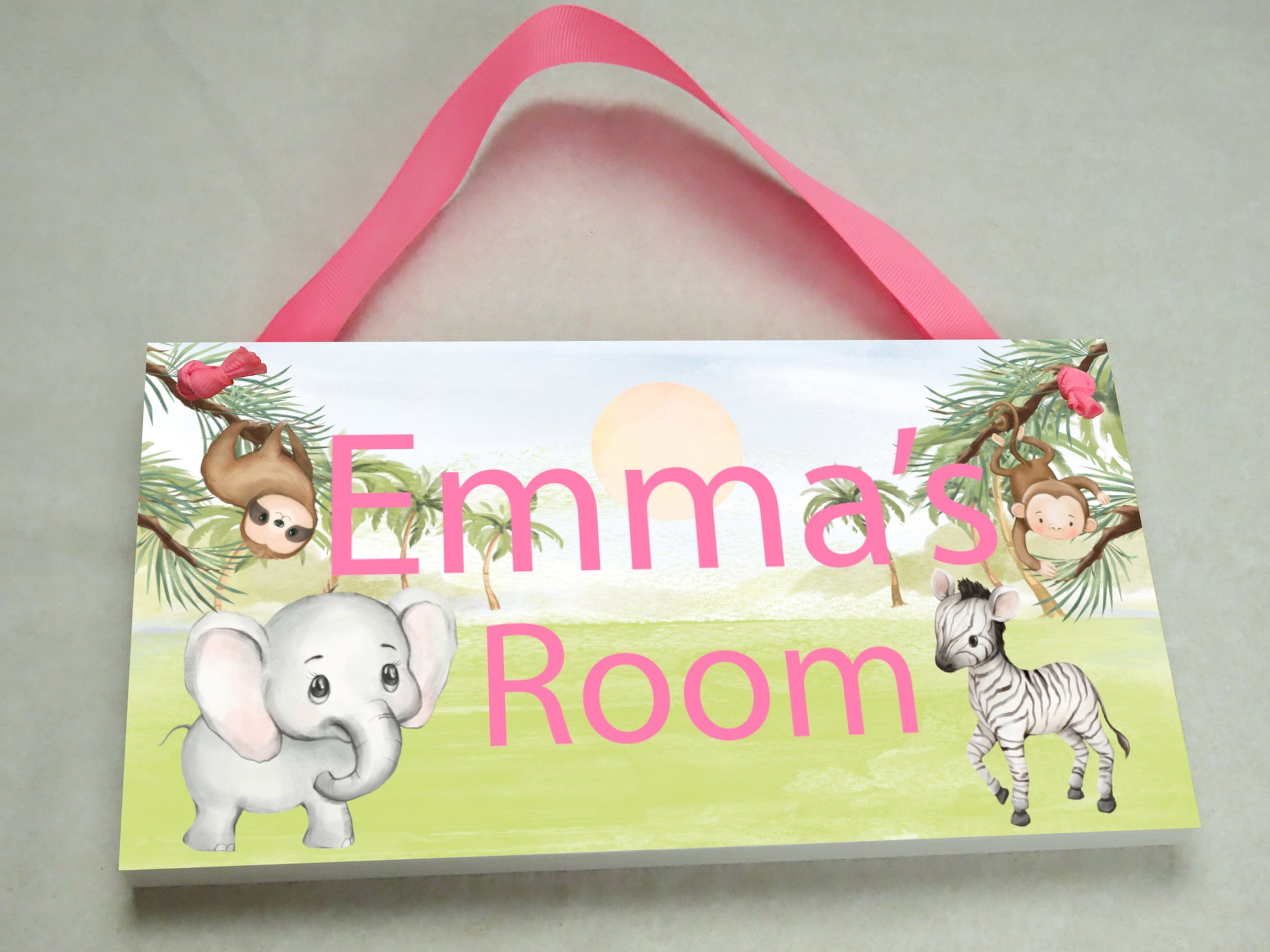 Zoo Animals Pink Door Sign